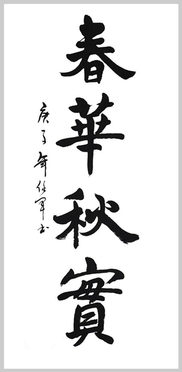 任军注重吸收历代各家各派所长,无论作品的题材、构想、章法意境等方面,均能多方接纳,为我所用。赋予以历史内涵和时代感,由此开拓了一种书法新气象。