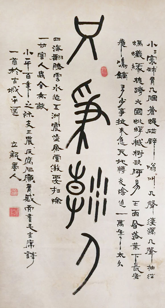 刘立新,笔名:墨人,陶城居士,六七年生于古陶城下,自幼受家训研习书法,八九年毕业于中国书画函授大学。曾得到欧阳中石教授的精心指点,也得到中日隶书学会会长欧伯达的精心教授,中国书协会员李雷,承德画院院长王秀杰,平遥县书协主席冀有贵、郭保旺等老一辈的精心培育。多次在国家省级书画比赛中获奖。 现为华夏书法艺术学术研究中心研究员,当代农民书画研究会会员,中国书协承德市会员,被东方艺术研究院聘为终身客座教授,中国新闻社湖南美术研究院授予“中国当代德艺俱佳书画艺术家”,“中华当代艺术精英”等誉称号。 作品及传略入选《中华当代书画家大典》、《中国当代书画名家名作典藏》、 《中华当代书画艺术精品荟萃》、《文艺年志》 、《共和国书画艺术名家作品博览》等几十部书画名家经典集册。 其书作洒脱劲健,六体俱能,尤精篆隶。