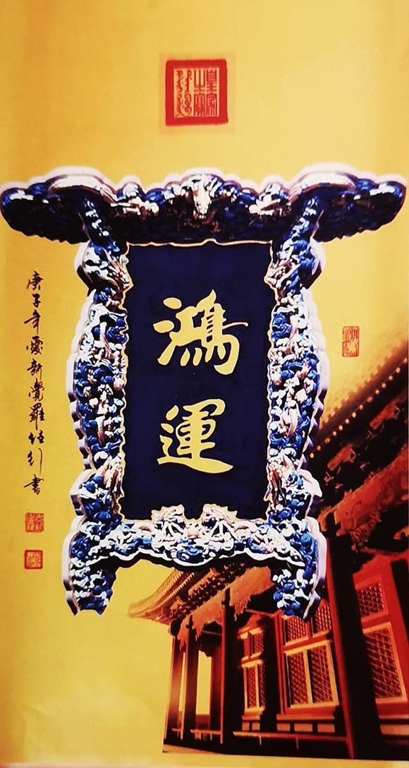 中国唯一以传承清朝历代皇帝御笔书写艺术风格和皇家传统艺术特点牌匾,作品创作表现故宫皇家建筑文化,皇家古建筑彩画,琉璃艺术中红墙绿瓦,中国书法与中国绘画相结合,既有传统又有创新的艺术表现形式同时展现在同一幅作品中,达到视觉冲击。
